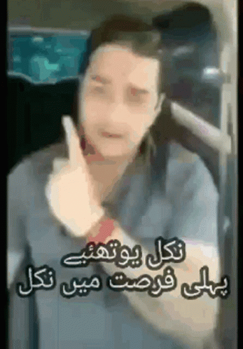 A man gives a thumbs up with the Urdu slogan 'نکل یوتھیے پہلی فرصت میں نکل' referencing Pakistani politics.