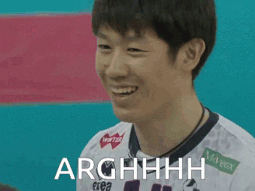 Japanese volleyball player Yuki Ishikawa smiling and reacting with the text 'ARGHHHH' appearing on screen.