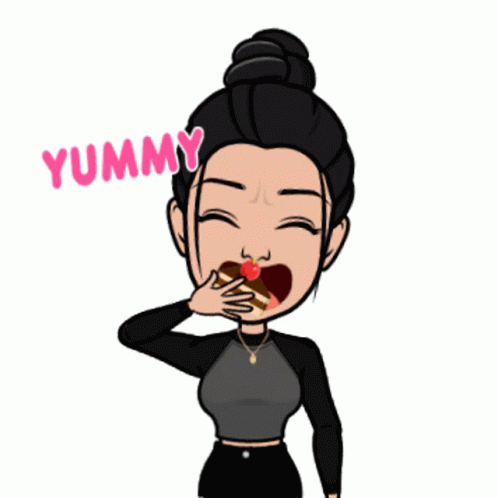 A cute cartoon girl expresses delight with the word 'YUMMY' appearing above her head.
