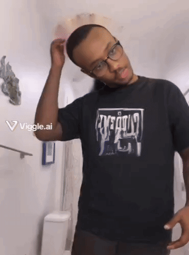 Yusuf7n Yusuf Abdullahi, wearing glasses and a black t-shirt, performs expressive hand gestures and facial movements.
