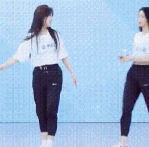 Two young women, Ywy and Dnhd, from Idol Producer, dance together and share a warm hug.