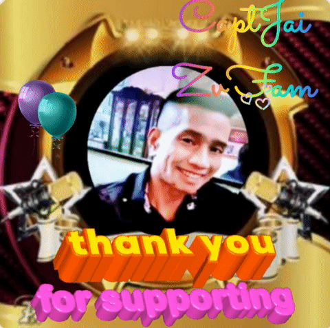 A man's portrait with text 'Capt Jai Zu Fam' and 'thank you for supporting' in a decorative frame.
