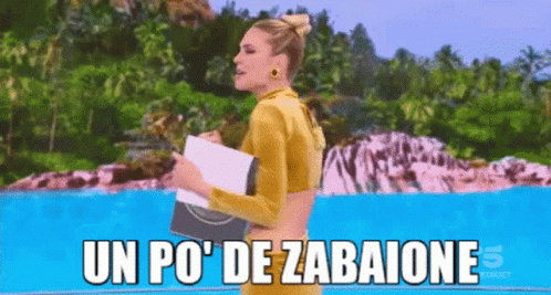 Italian TV presenter Ilary Blasi enthusiastically says 'A little bit of zabaglione' on L'isola dei Famosi.