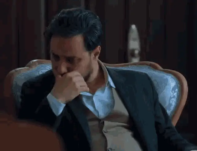 A man from Zakhm Zakhme Kari in a suit and vest looks up with an intense gaze next to a potted plant.