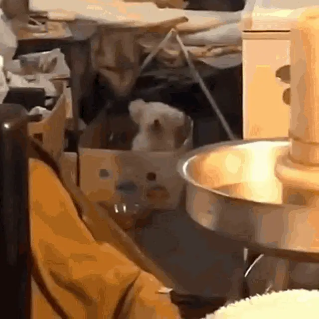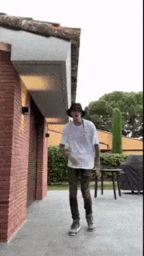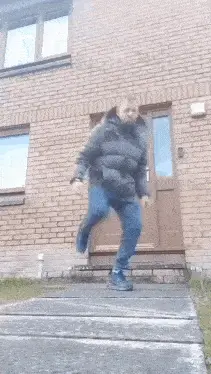 A cartoon pig dances energetically in a rustic room with an old TV and a 'Dad of the Year 1997' award.