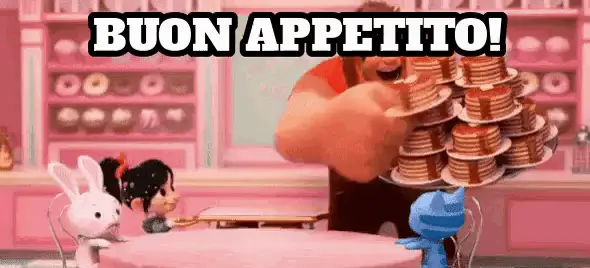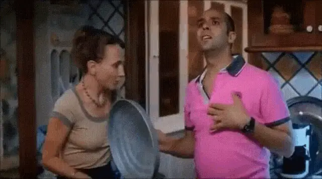 Checco Zalone comically insists a woman eat a porchetta sandwich, warning her about being too skinny.