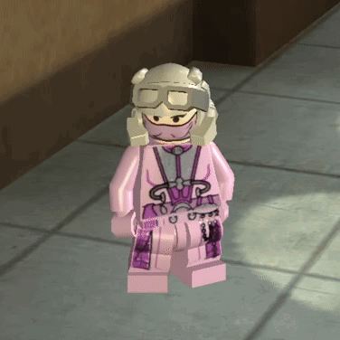 Lego Zam Wesell, a character from Lego Star Wars, crouches while holding a blaster.