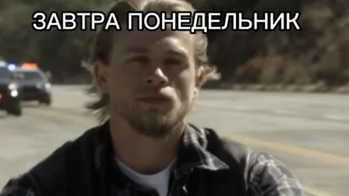 A man on a motorcycle with police cars in the background, reacting to "Tomorrow is Monday."