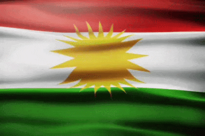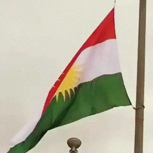 The vibrant flag of Kurdistan, featuring red, white, and green stripes with a golden sun emblem, waves proudly.