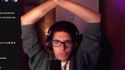 Streamer Zbera (zebrabandit) makes a pyramid shape with his hands, referencing 'piramida' and 'ples' from his stream.
