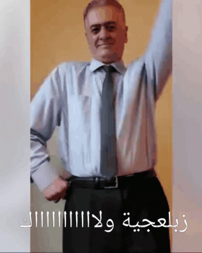 Zabala'jiya Shartah, a man in a shirt and tie, performs a funny and playful dance.