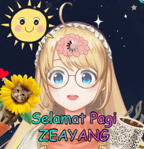 Zea Cornelia from Nijisanji wishes 'Good Morning ZEAYANG' with a cheerful image, featuring a sun, cat in a sunflower, and coffee.