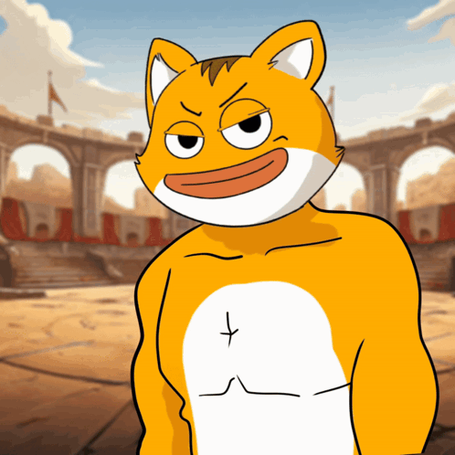 Zeek the muscular cat character flexes in an arena, promoting Zeek Coin.