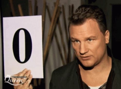 Guido Maria Kretschmar holds up a '0' score card, delivering a harsh judgment on Shopping Queen.