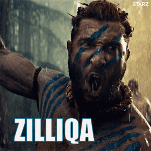 A man with blue tribal face paint shouts intensely, with 'Zilliqa' and 'GOOOOO' text appearing on screen.