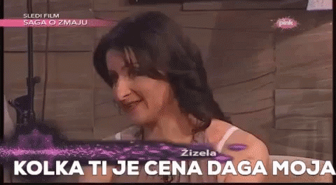 Zizela from Serbia speaks on a television show, asking 'What is your price, my darling'.