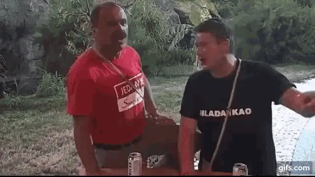 A man with a mustache and missing teeth grimaces at the camera, featuring a dragon logo.