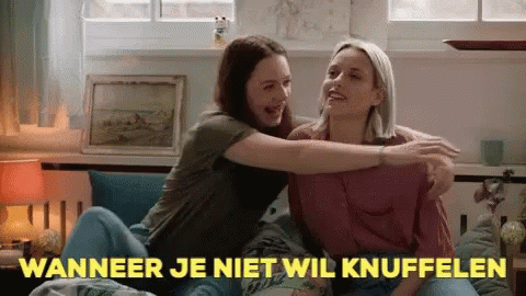 Zoe hugs Jana on a couch, but Jana shows clear reluctance, with the caption "When you don't want to hug."