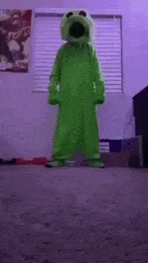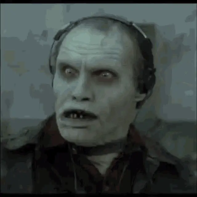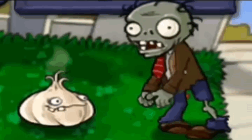 A zombie from Plants vs. Zombies reacts to a garlic bulb, showing its aversion to the pungent plant.