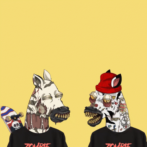 Showcasing Zombie Zebras and Nude Dudes NFT art, featuring hoodies and unique cartoon zebra characters.