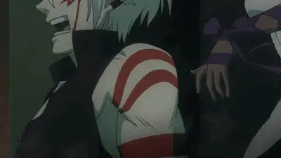 Shito Tachibana playfully grabs Chika Akatsuki, asking him to 'Play with me' in this Zombie Loan scene.
