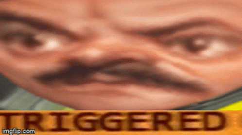 Close-up of a man's face with an angry expression, featuring the 'TRIGGERED' meme text.