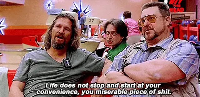 Young man with glasses reacts to the Russian caption 'Hild bit her head again' in a circular video frame.