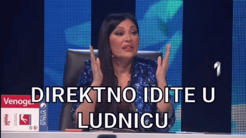 Svetlana Ceca Raznatovic on Zvezde Granda, gesturing passionately with the caption 'Go directly to the asylum'.