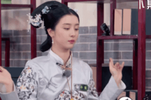 Zhao Xiao Tang poses gracefully in a traditional Chinese dress, adorned with an elaborate historical hairstyle.