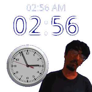a man stands in front of a wall clock that says 02:54 am