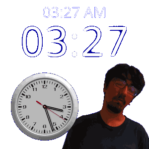 a man stands in front of a clock that says 3:27