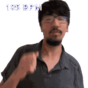 a pixelated image of a man with glasses and a beard says 105 bpm