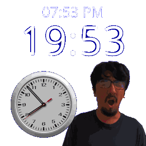 a man stands in front of a clock that says 7:53 pm 1953