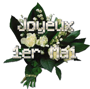 A beautiful animated sticker featuring a bouquet of white lily of the valley flowers, traditionally given on 1er Mai.
