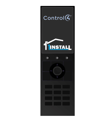 Animated sticker of a Control4 and Crestron home automation remote displaying the 1install logo and system info.