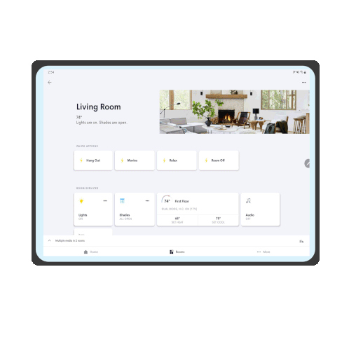 Control your smart home with 1install and Crestron. Manage lights, thermostat, and shades from a tablet interface.