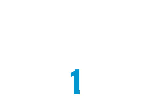 A clean blue line with the number 1, representing 1install and Crestron's smart home and audio visual solutions.