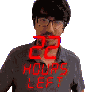 a man wearing glasses and a shirt that reads 22 hours left