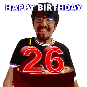 a man with glasses is holding a cake with the number 26 on it