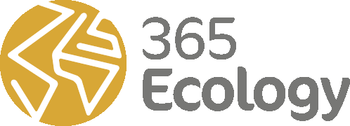 a logo for 365 ecology has a globe in the center
