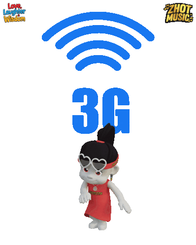 a cartoon girl is standing in front of a 3g symbol