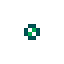 An animated 8-bit pixel art sticker featuring a green and white spiral pattern that disintegrates into scattered squares.