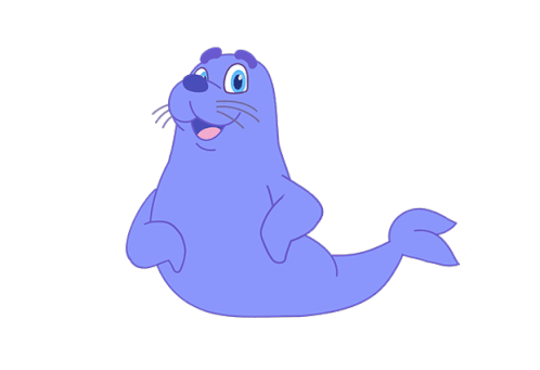 a cartoon drawing of a seal with a big smile on its face