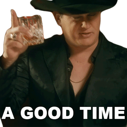 Jon Pardi raises a glass of whiskey, embodying "A Good Time" in this animated sticker.