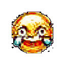 a pixel art illustration of a crying smiley face with tears coming out of its eyes .