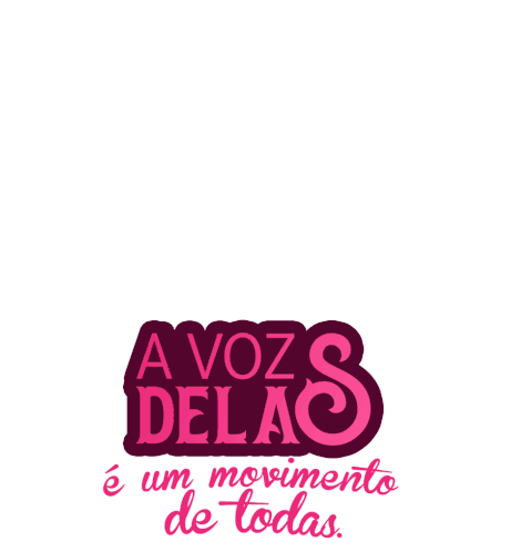 Three diverse fists raised in solidarity, with the Portuguese text 'A Voz Delas é um movimento de todas' promoting female empowerment.