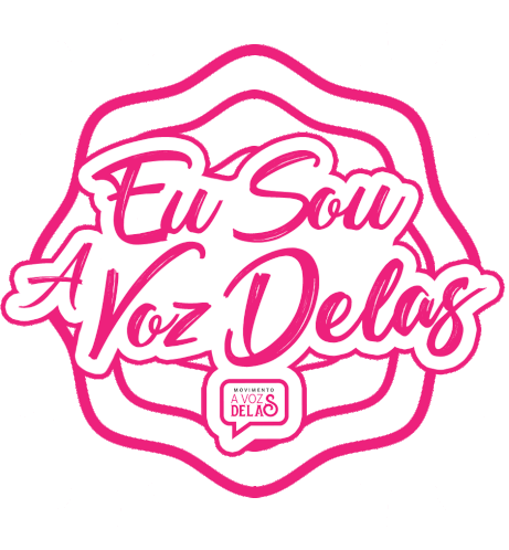 An animated sticker featuring the pink logo 'Eu Sou A Voz Delas' (I Am Their Voice) with 'Movimento A Voz Delas' below.