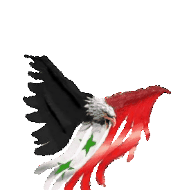 An animated sticker featuring an eagle with wings colored in the Syrian flag design, symbolizing national pride.