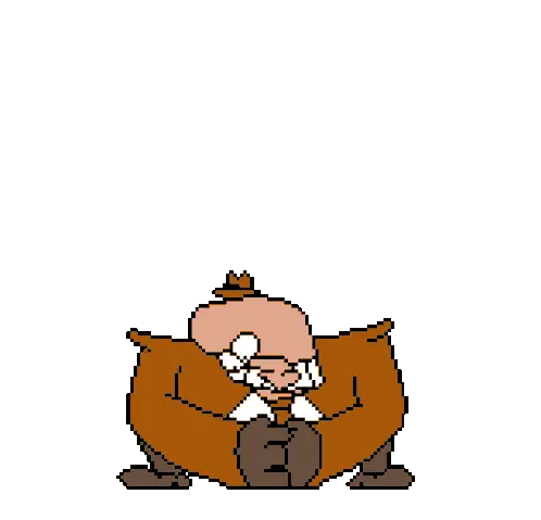 Aba from Guilty Gear, a pixel art character, stands with her iconic giant golden key featuring a skull and cross design.