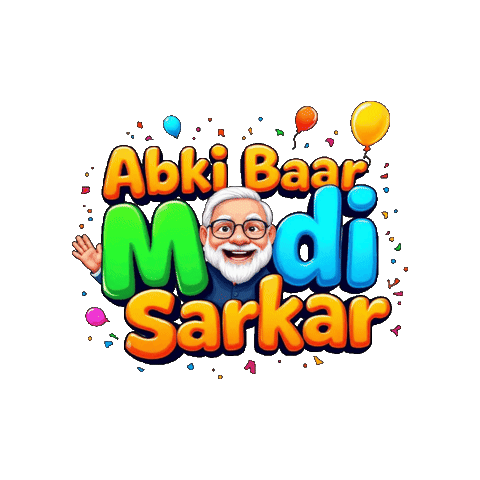 a cartoon of a man with the words abki baar modi sarkar surrounded by balloons